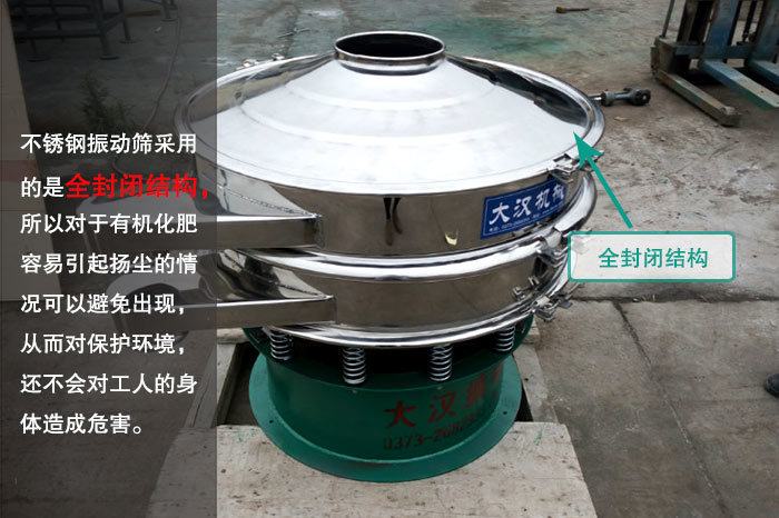 不銹鋼振動(dòng)篩采用的是全封閉結(jié)構(gòu),所以對于有機(jī)化肥容易引起揚(yáng)塵的情況可以避免出現(xiàn),從而對保護(hù)環(huán)境,還不會對工人的身體造成危害。